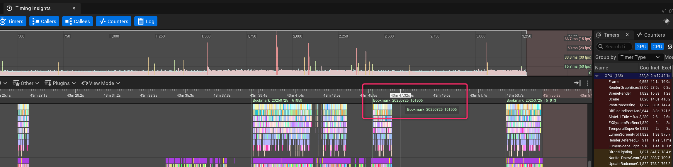 付与したBookmarkはデータをUnrealInsightsで開くことで確認できます。
