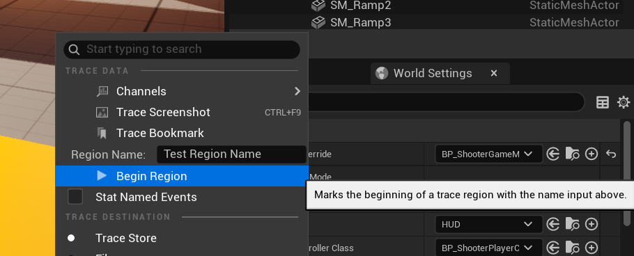 ○ (UE5.0~)PIEでTraceコマンドを使用して実行する際に、