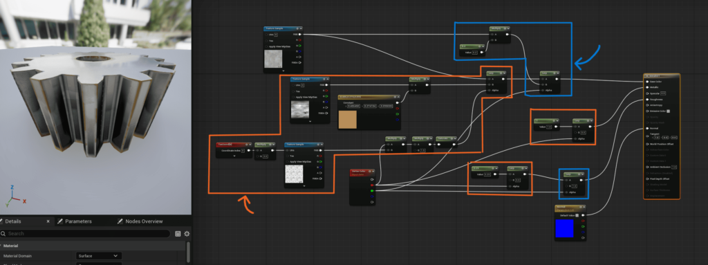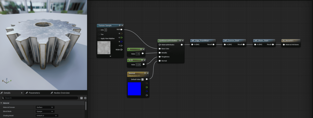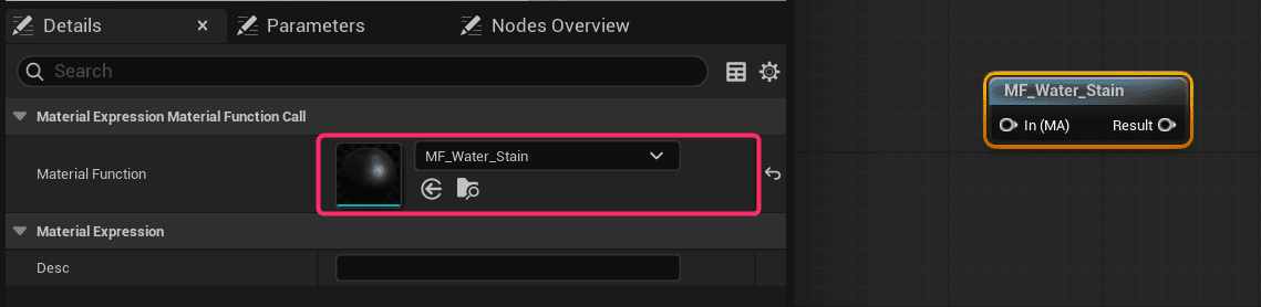 しかし、MaterialFunctionと一緒に使うことで、他のマテリアルで再利用でき、保守しやすくなります。