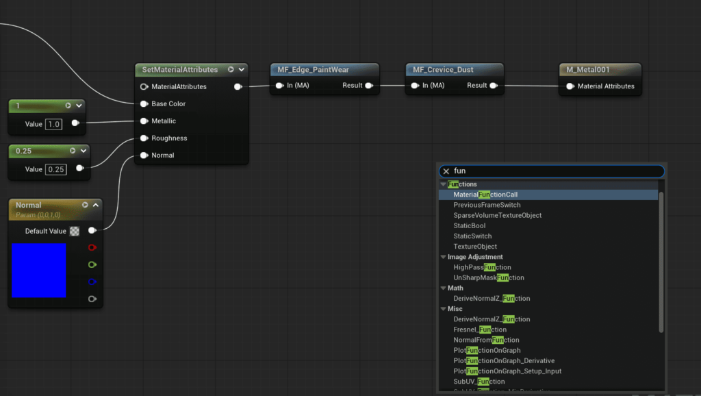 ・Material Function Callを呼び出して先ほど作成したMaterial Functionを選びます。