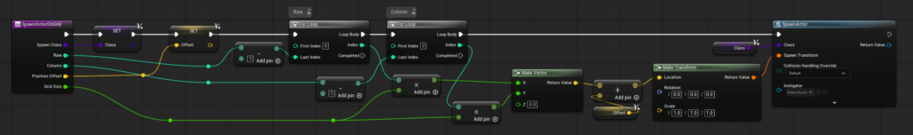 次にアクタをグリッド状にスポーンする関数「SpawnActor on Grid」を作成します。