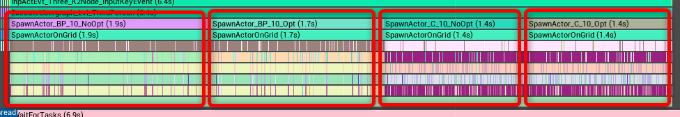 TestActor_BP_10_Optと比べるとC++クラスの方が17%(1.7sec -> 1.4sec)程高速になっていますね。