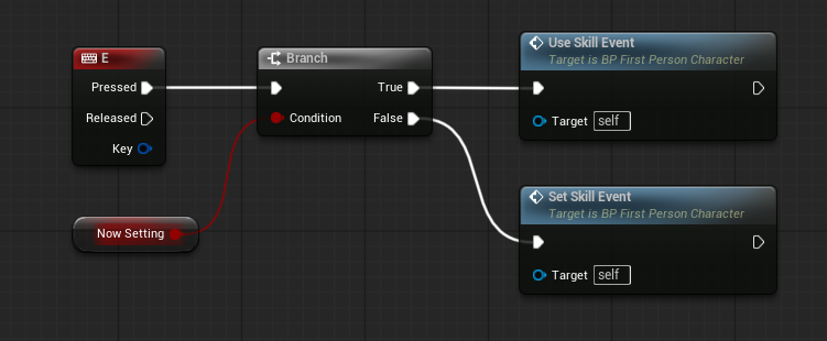 カスタムイベントを2つ作成し、スキルの発動準備が整っているか否かで分岐させます