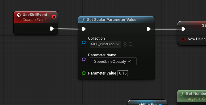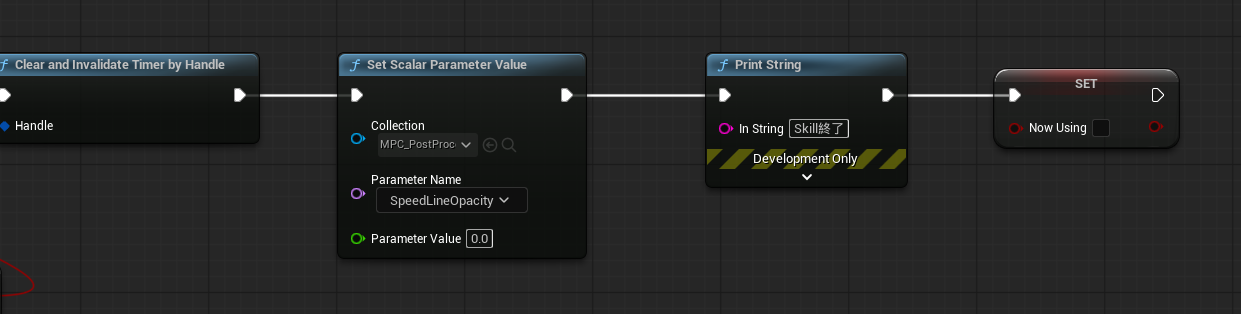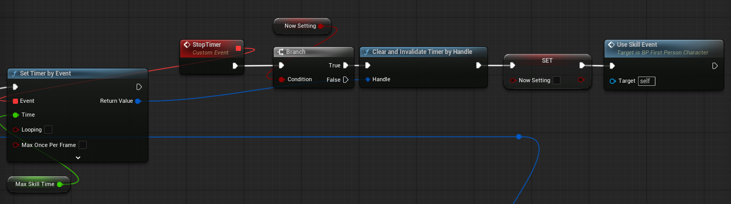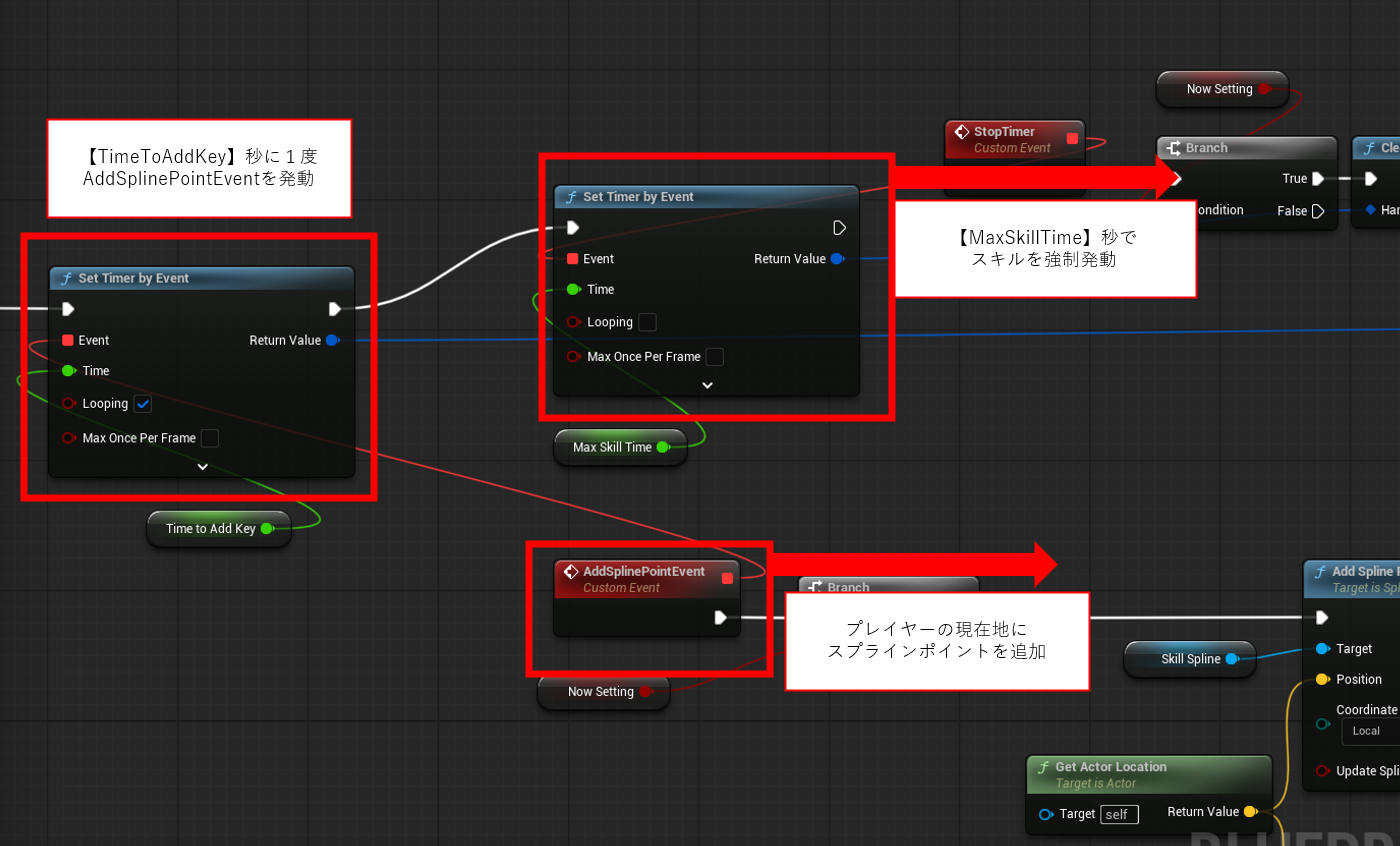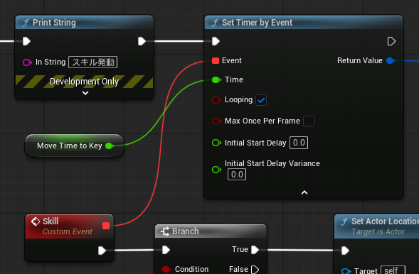 こちらは「MaxSkillTime」(5.0)秒に1度だけ、スキルを強制発動させるカスタムイベント「StopTimer」起動します。