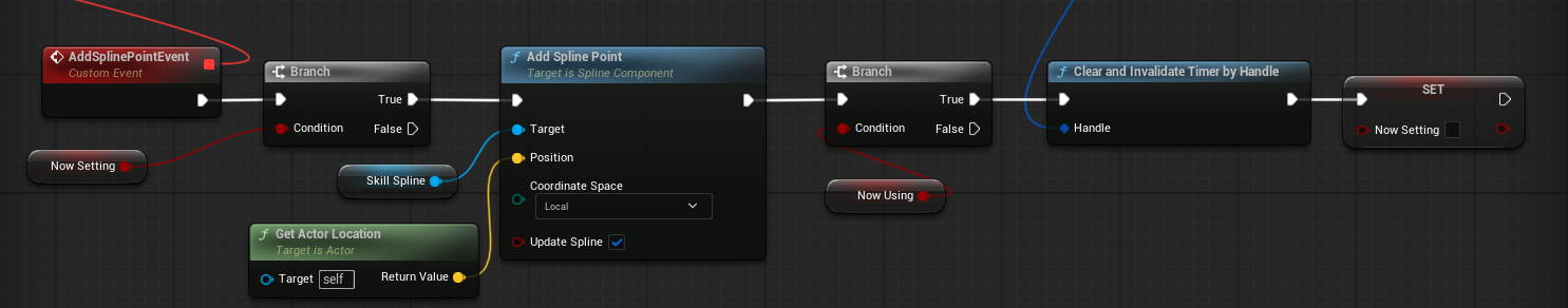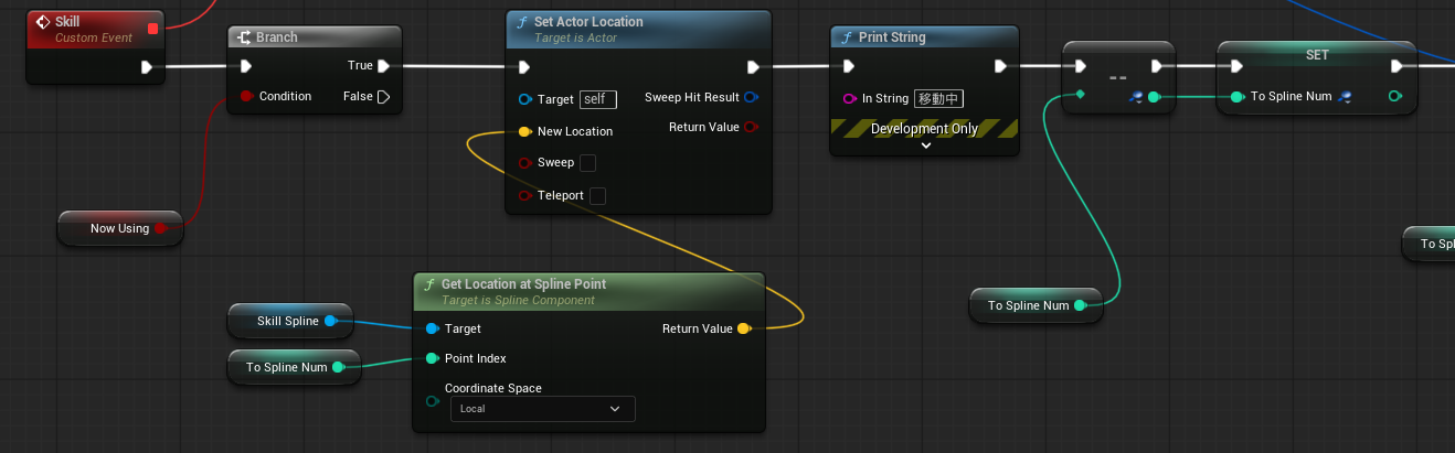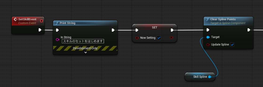 続いて実際にスプラインポイントを逆行するカスタムイベントUse Skill Eventを作成していきます