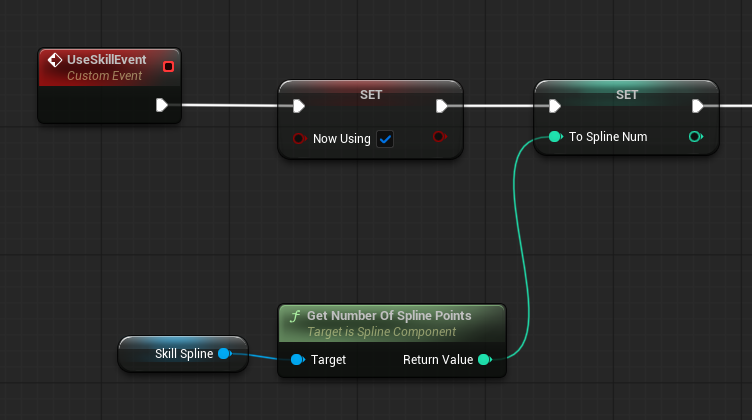 【Get Number of Spline Points】ノードで、スキル準備中に作成されたスプラインポイントの総数を調べ、「To Spline Num」に保存しておきます