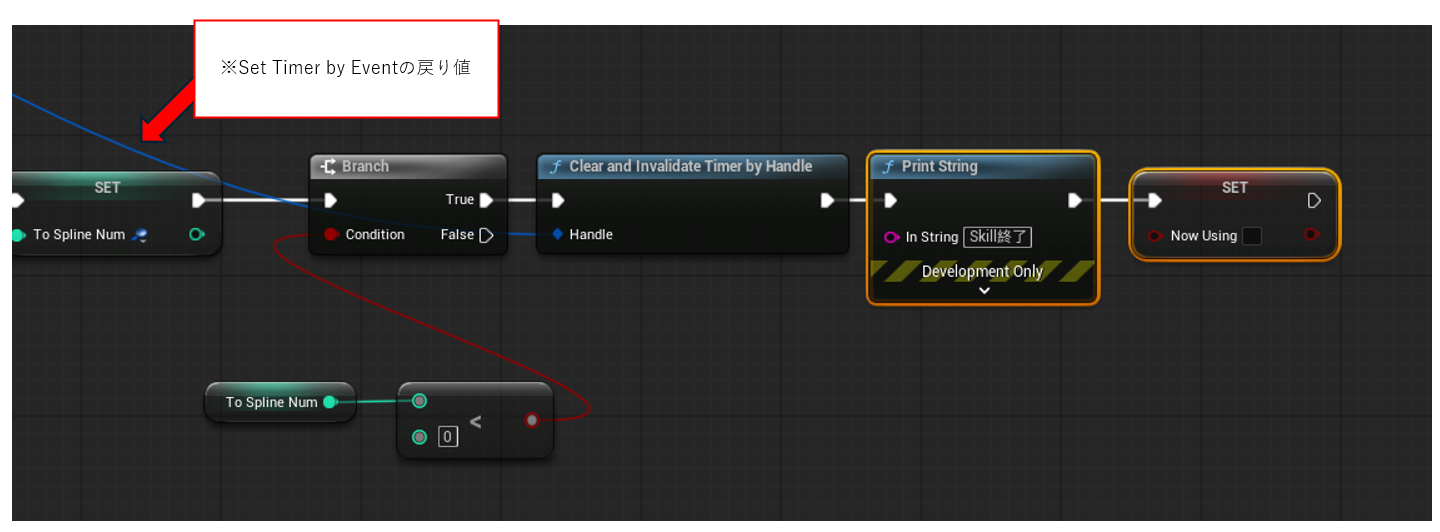 「To Spline Num」が0以下になったらSet Timer by Eventのタイマーを止めます