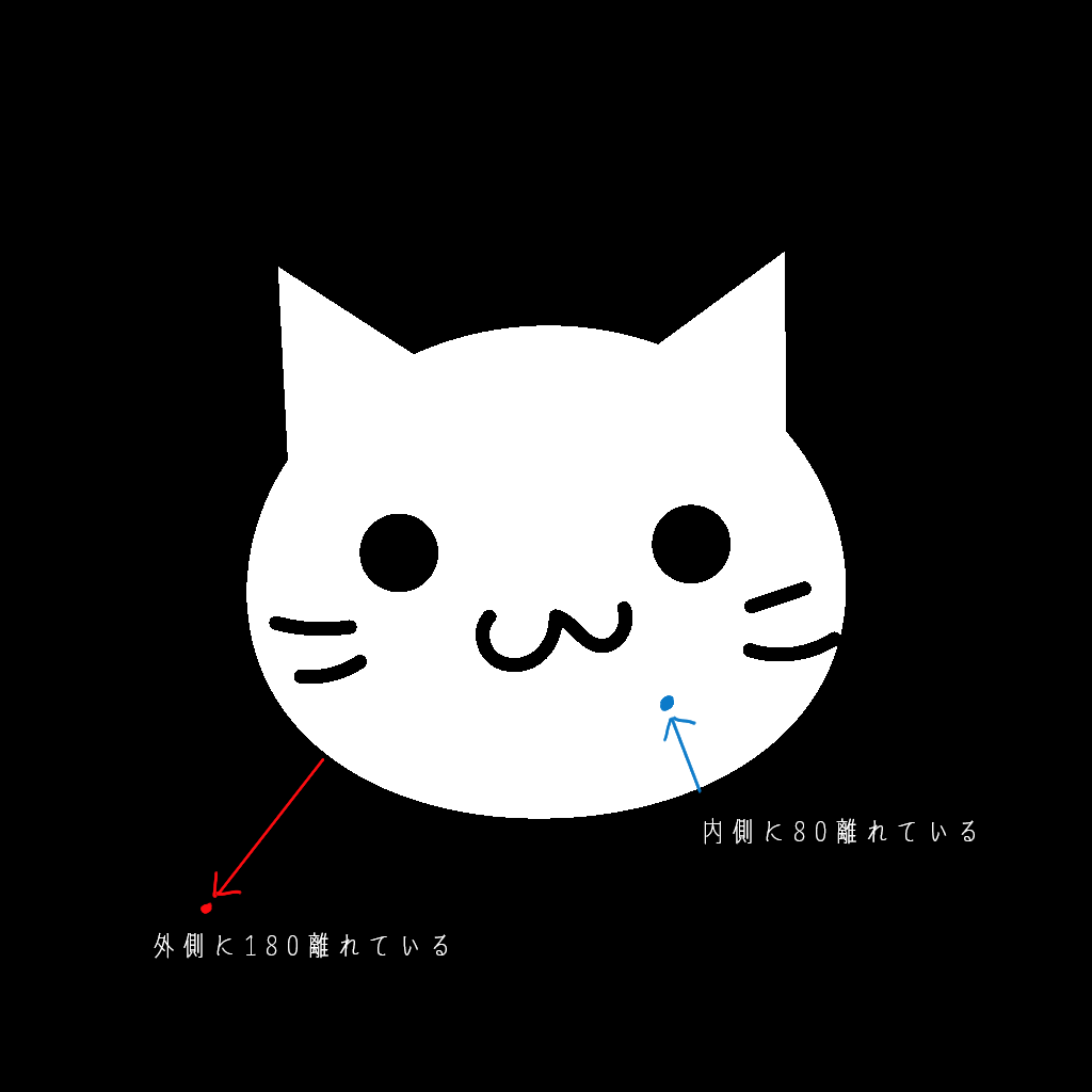最も単純な距離場は、画像の輪郭から外側に向かって距離に応じたグラデーションを持たせたものです。