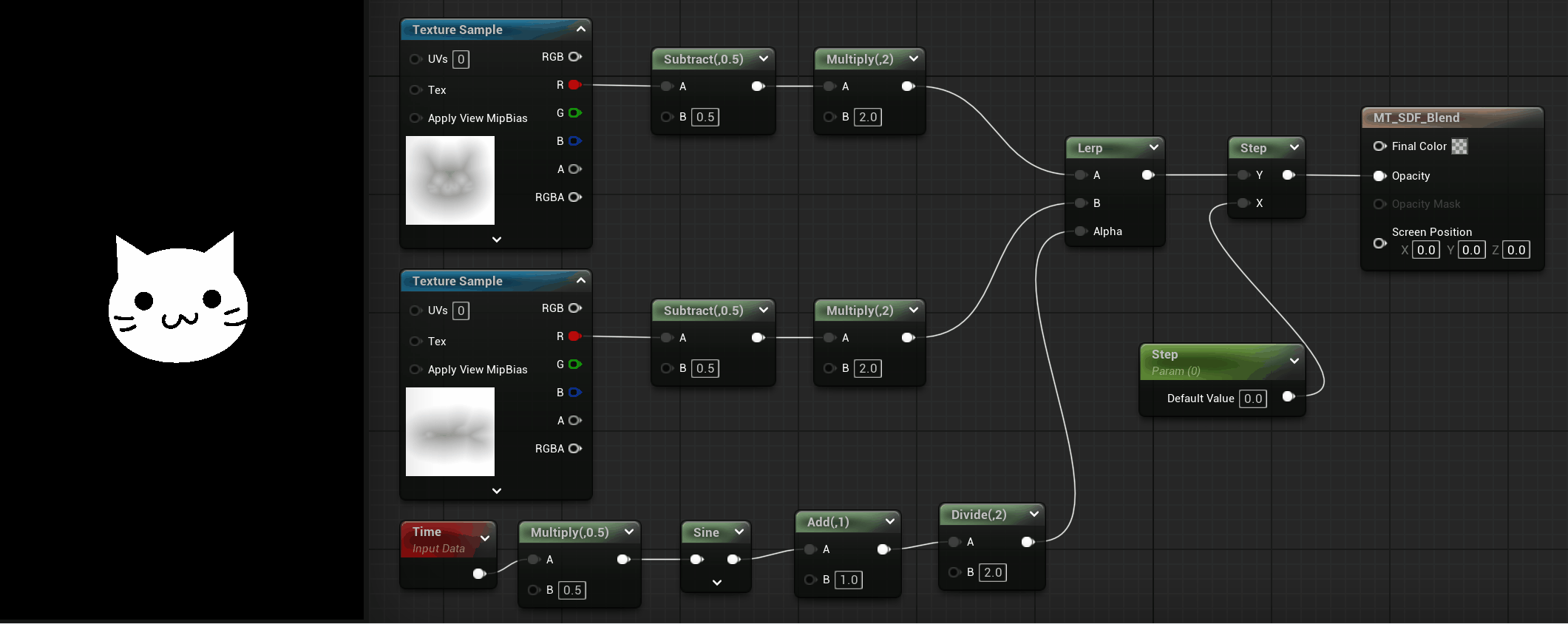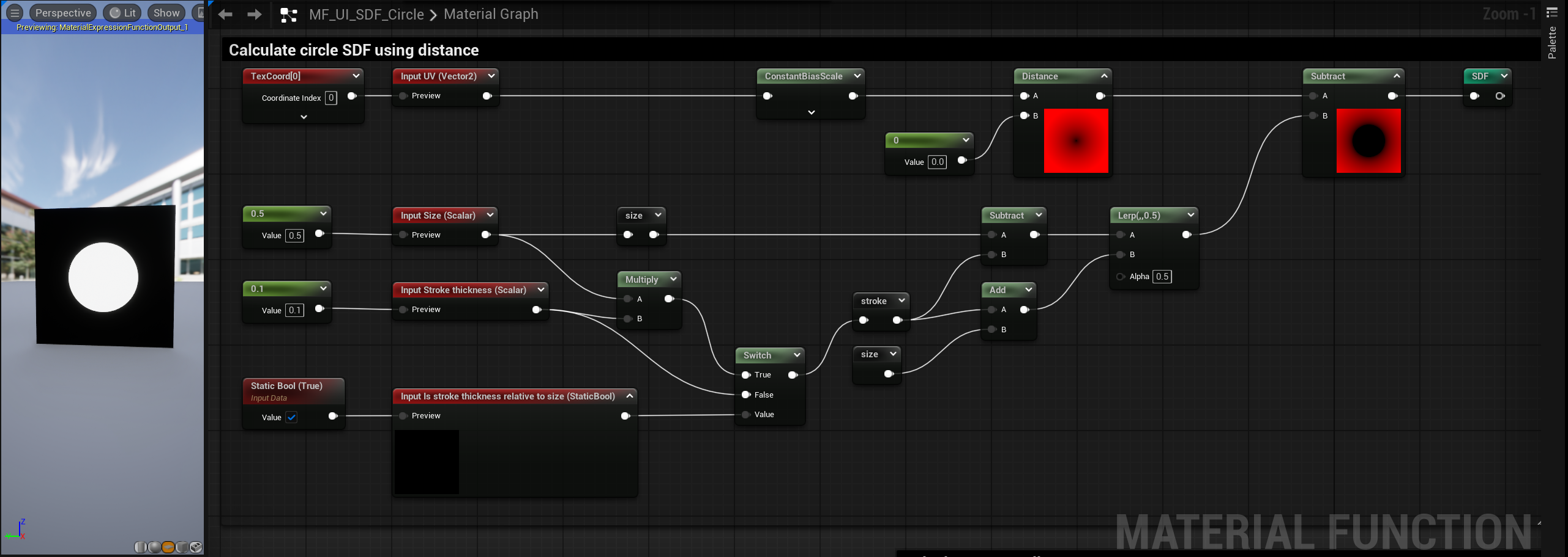 Unreal Engine の UI Material Lab に含まれる多くの関数群は、このような「数式ベースのSDF」に基づいて設計されています。