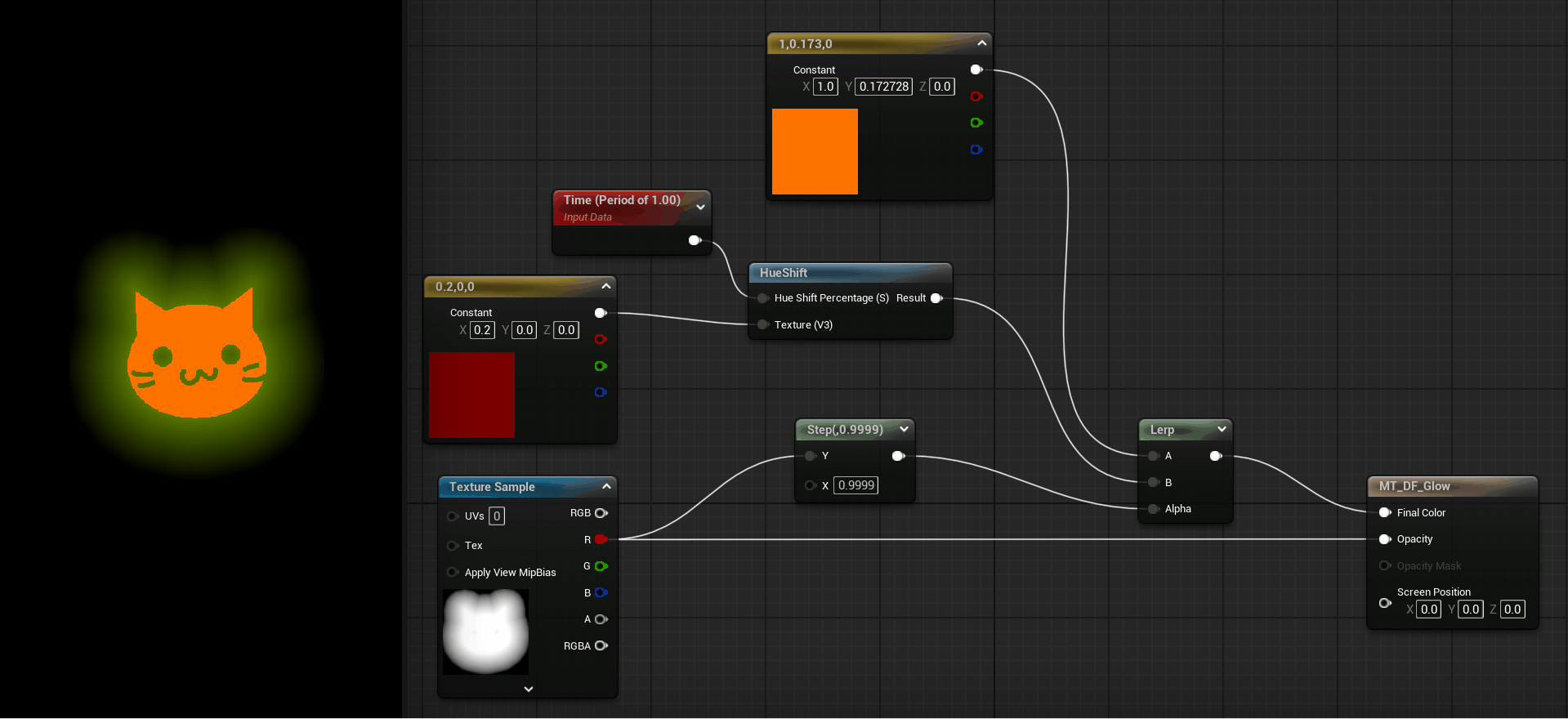 マテリアルエディタ上では、このデータを使ってアウトライン生成やグロー効果などを行えます。