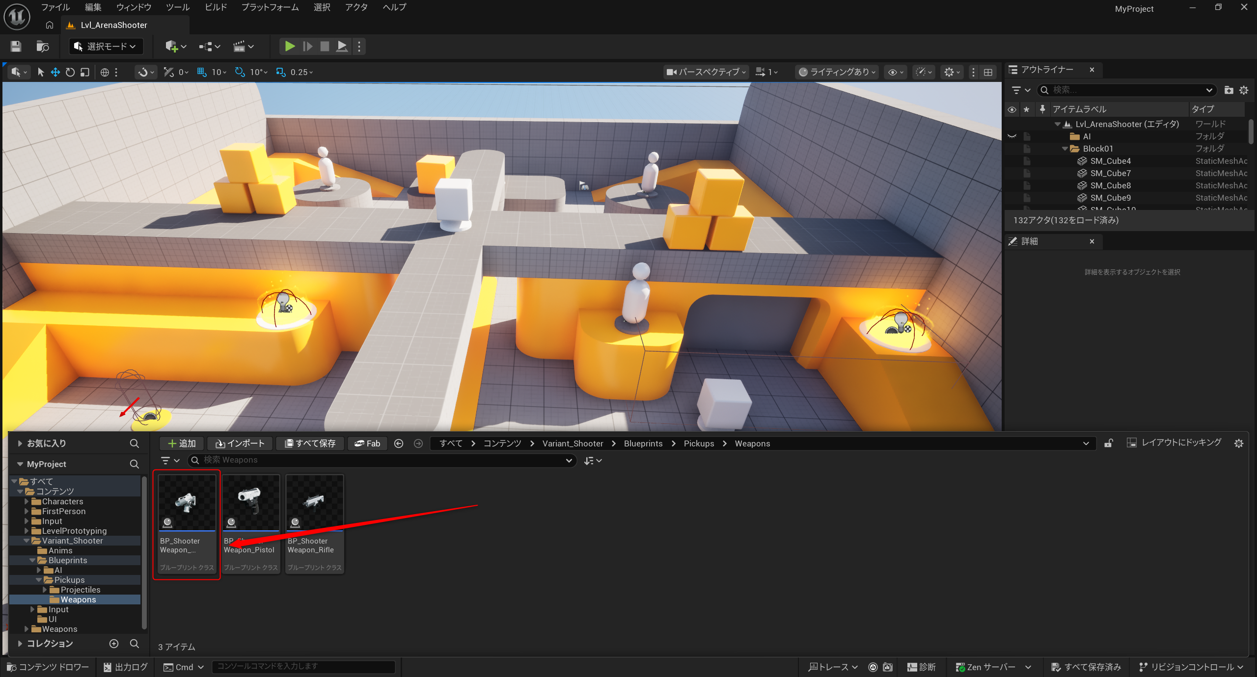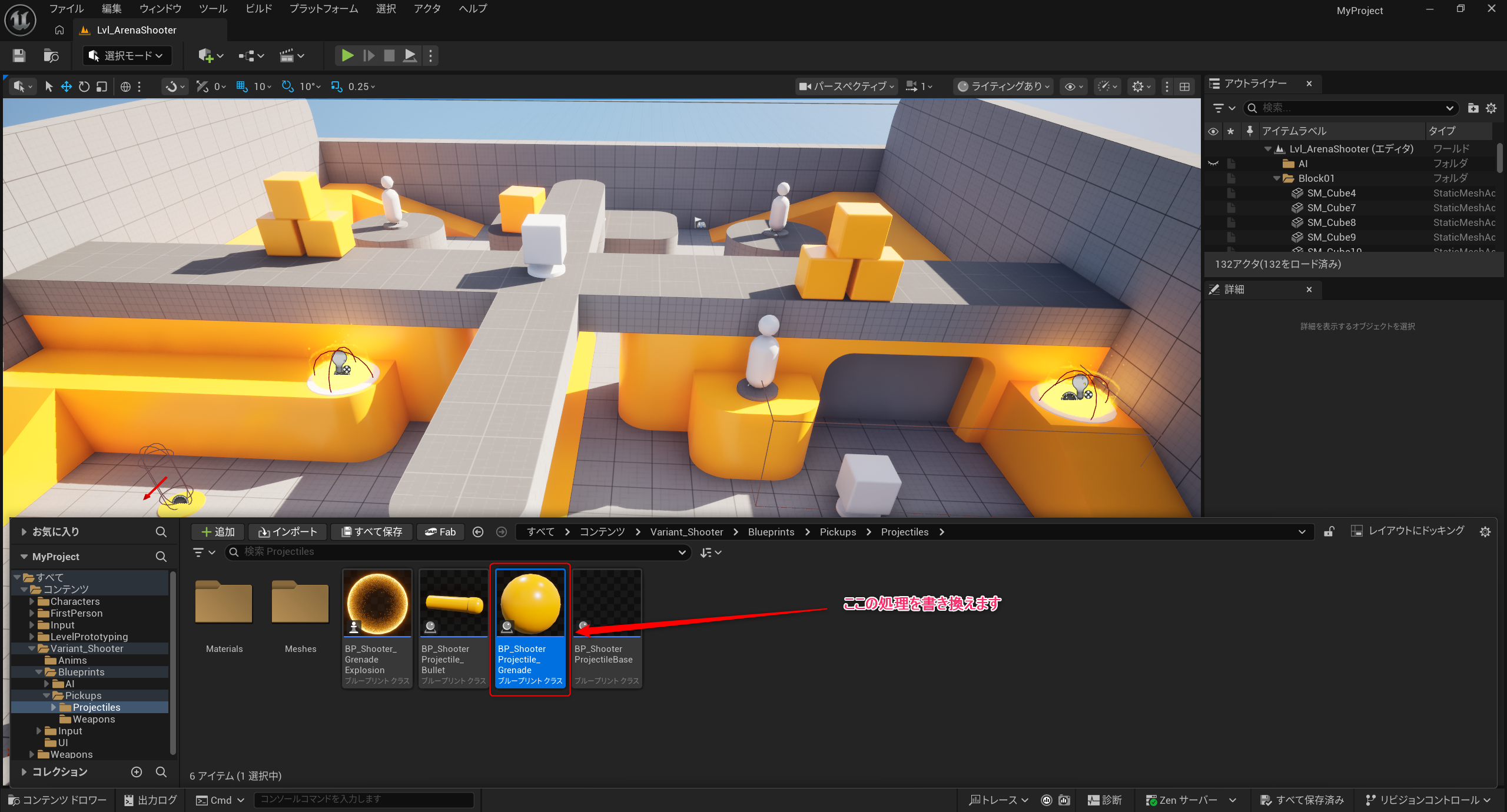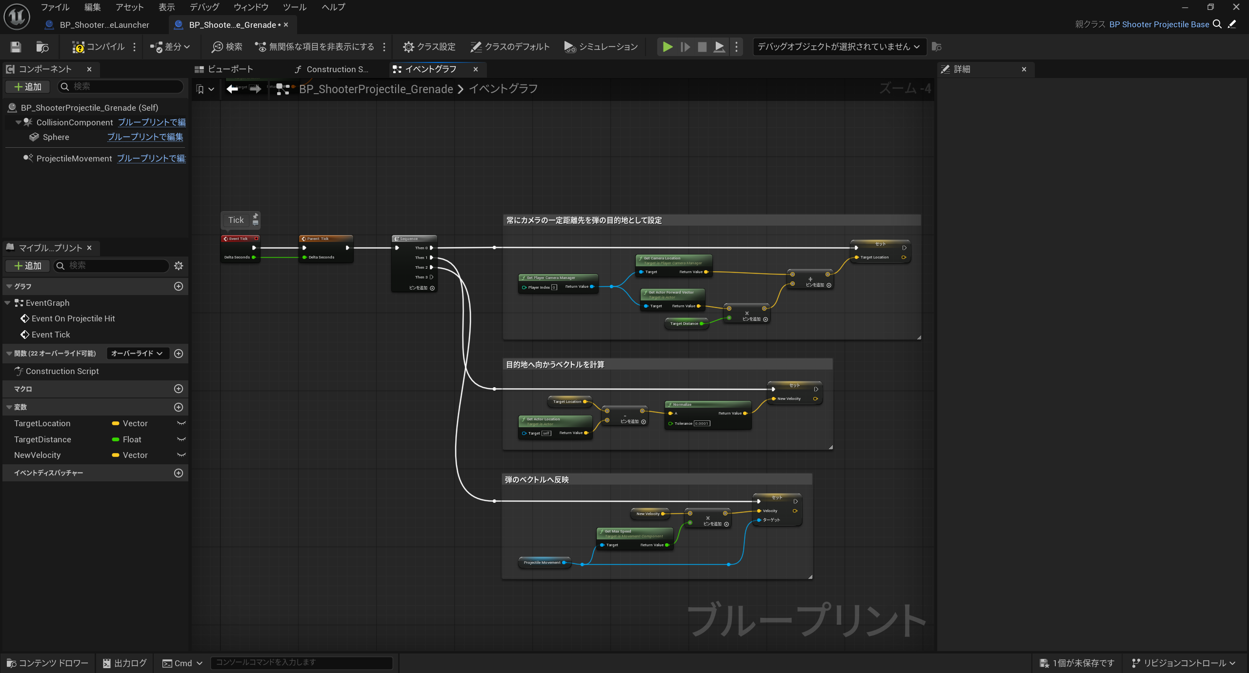 そのうちの1つ、グレネードランチャーとして実装されている「BP_ShooterWeapon_GrenadeLauncher」を使用したいと思います。