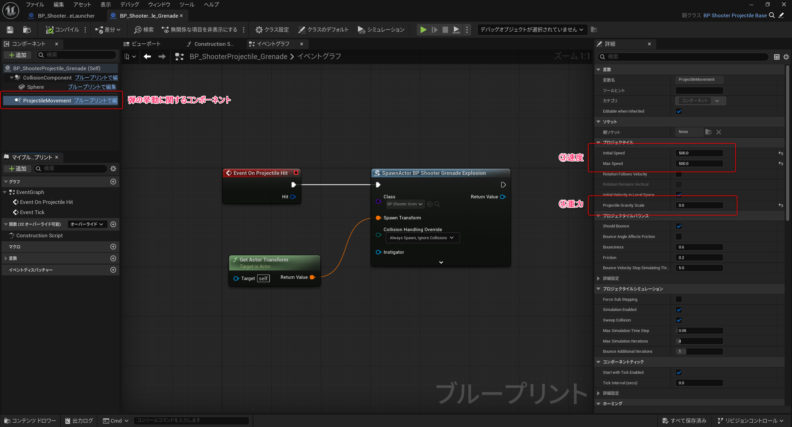 続いて弾側「BP_ShooterProjectile_Grenade」の設定です。