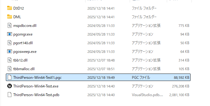 PGOはProfile-guided optimizationの略で、実際にゲームをプレイして得たプロファイルを基に速度を最適化してくれるもののようです。