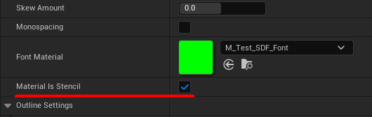 先ほどのマテリアルを設定した部分の下に、Material is Stencilがあるので、こちらを有効にします。