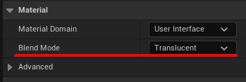 マテリアルを新規作成し、Material DomainをUser Interfaceに変更します。
