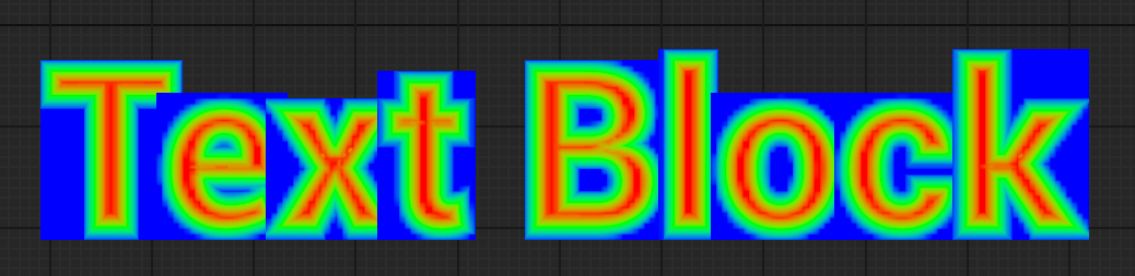 Signed Distanceのピンから上記の画像で説明したフォントの境界線から内側に向かうほど+に増えていく数値、