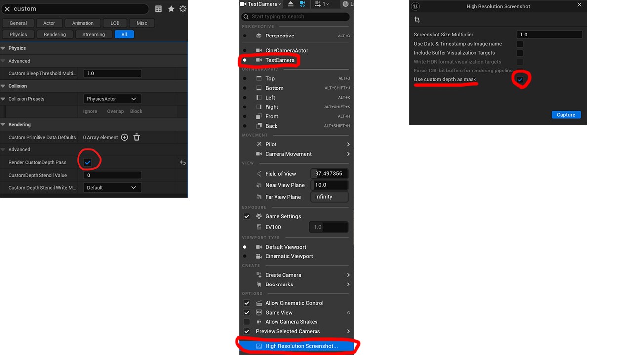 3、Use custom depth as maskにチェックを入れて撮影という流れになります(画像の大きさに関してはScreenshot Size Multiplierの数値を変更してください)