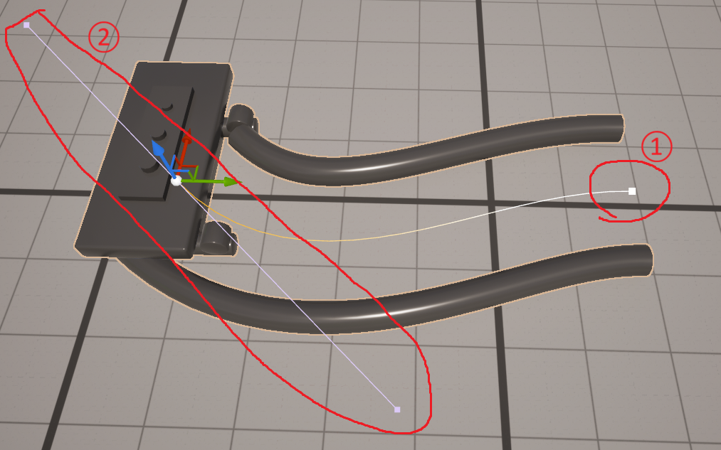 ハンドルの回転はDetailsのSelected PointsのRotaionのYとZの数値でも調整することが出来ます(Yは上下回転、Zは横回転)。