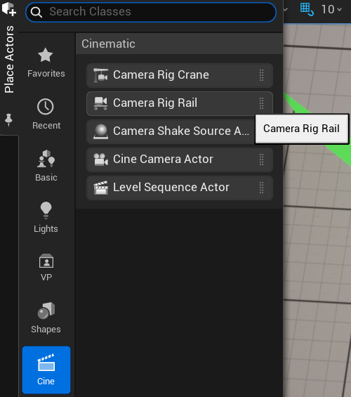カメラの種類の一覧はPlace ActorsのCineの中にあります。