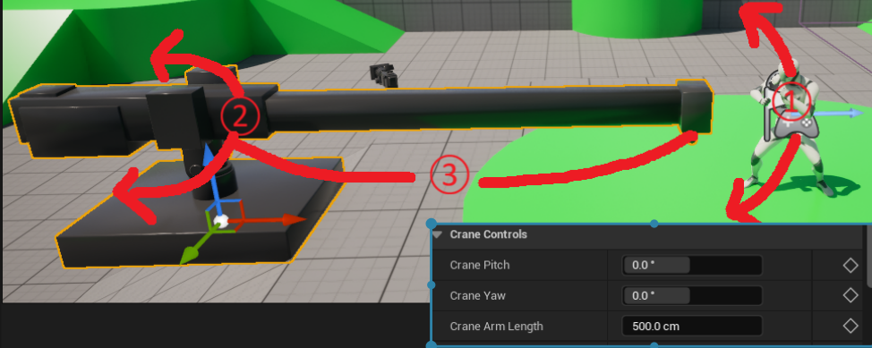下記はSequencerにCamera Rig CraneとアタッチしたCine Camera Actorを設定して動かした動画になります。