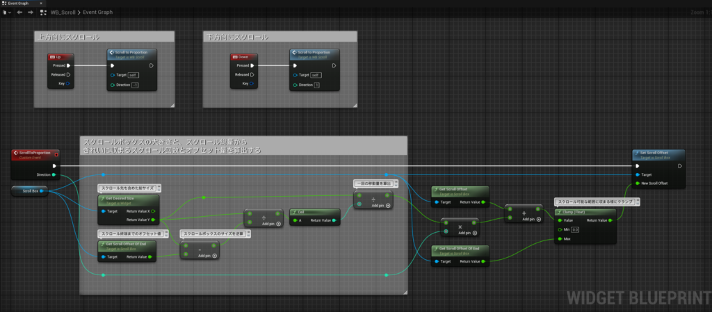 紹介したサンプルではスクロールボックスの大きさを[Get Desired Size] – [Get Scroll Offset Of End]で計算しているのですが、実はこれを使わずともスクロールボックスの大きさを取得する方法が存在します。