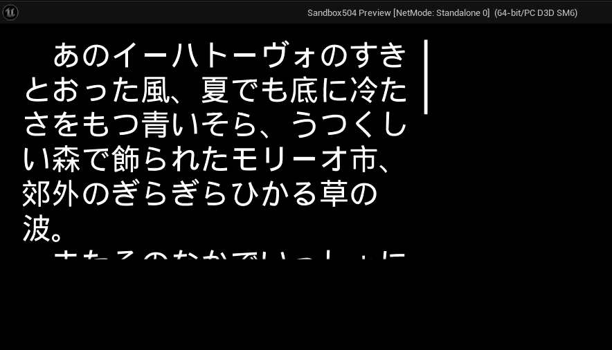 いたってシンプルで、ScrollBoxに子としてTextを配置しただけのものとなります。設定もほぼデフォルトままです。