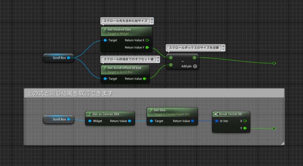 このSlot as Canvas SlotのGet Sizeで直接スクロールボックスに設定している大きさを取得できます。
