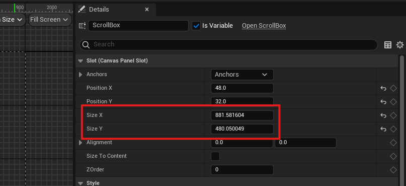 具体的にはSizeBoxやVerticalBoxなどの子WidgetにScrollBoxを設定していて、キャンバススロットでサイズ設定が出来ない時となります。