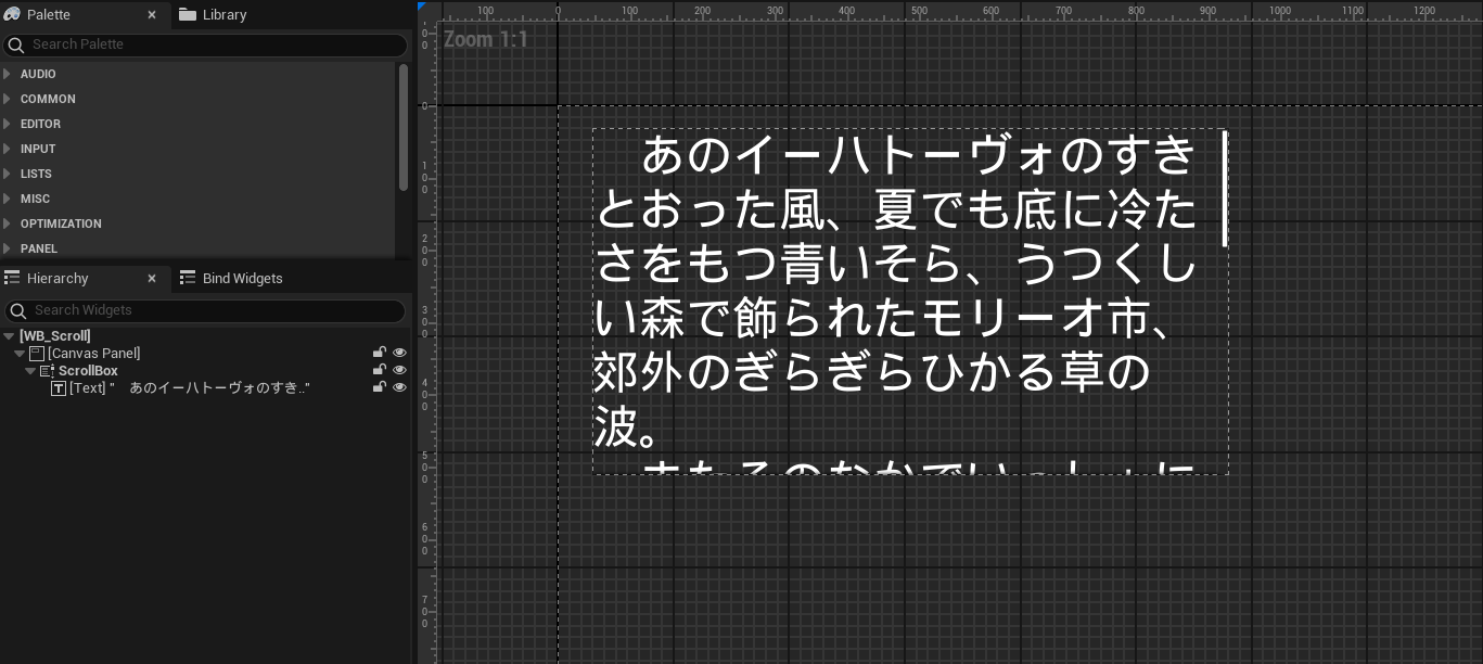 いたってシンプルで、ScrollBoxに子としてTextを配置しただけのものとなります。設定もほぼデフォルトままです。