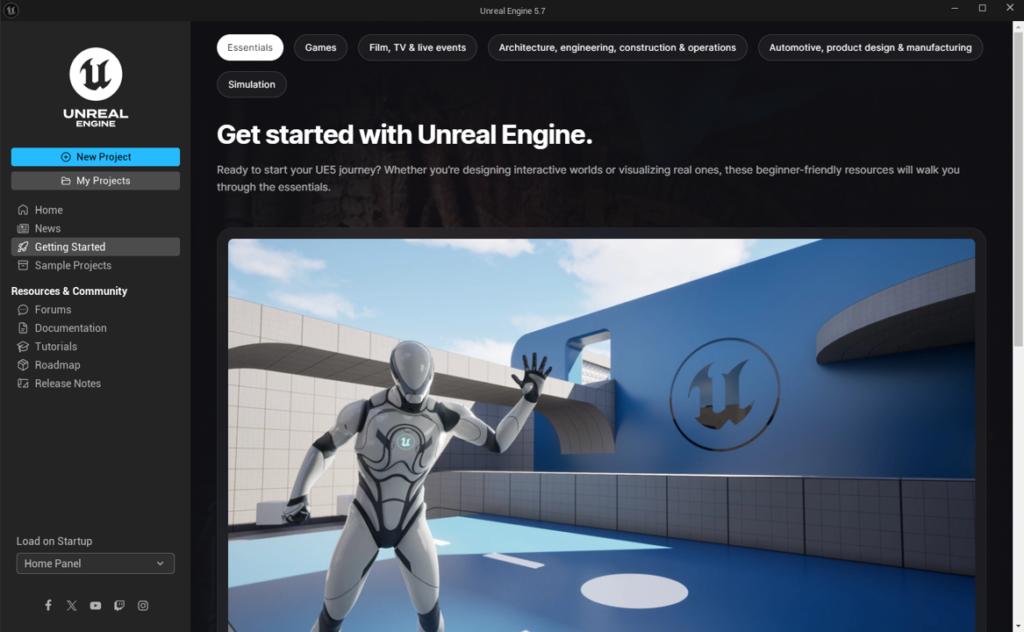 UE5.7でUnreal Editorのホームが変わりましたね!