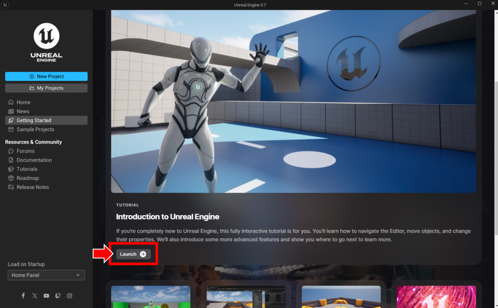 (新しく変わったUnreal Editorホーム画像)